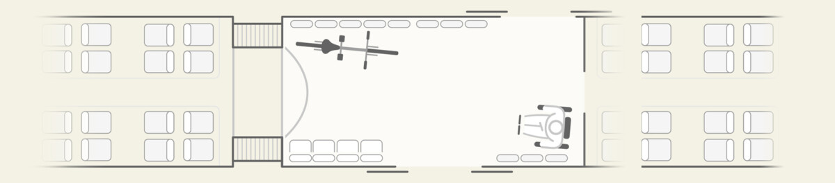 Siirtyessäsi vaunuun olet sen monikäyttöalueella. Siellä matkustat helpoimmin polkupyörän, rollaattorin tai vaikka isojen kantamusten kanssa. Alueen esteettömyyttä on testattu monenlaisilla apuvälineillä. Lastenvaunulla tai pyörätuolilla mahtuu kääntymään ja opasteraidat lattiassa ohjaavat oikealle paikalle. Ratikassa on paikka 12 lastenvaunulle tai 6 isolle pyörätuolille, 6 paikkaa polkupyörälle (vaunun keskimoduulissa) ja 4 paikkaa opaskoiran kanssa matkustavalle. Kaikki mainitut eivät mahdu vaunun monitoimialueelle samaan aikaan, mutta 50 neliömetrille (vapaa lattiatila) mahtuu kyllä monenlaista matkustajaa.
