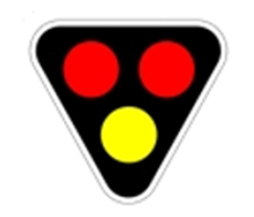 Kuva 3.6. g) Keltainen varoitusvalo liikennemerkin yhteydessä. Valo osoittaa, että tienkäyttäjän on noudatettava erityistä varovaisuutta.