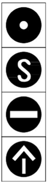 Kuva 3.6. c) Tampereen raitiotiellä käytettävä joukkoliikenneopastin. Voidaan käyttää, jos raitiovaunuliikennettä ohjataan muusta liikenteestä erillään. Merkitykseltään S-kirjain vastaa punaista valoa, vaakaviiva keltaista ja nuolikuvio vihreää. Ylimmäinen valo on liikennevalojen etuusopastin, joka kertoo liikennevalon opasteen muuttuvan ajon sallivaksi etuisuusasetusten mukaisesti. Liikennevalojen lisäksi radalla käytetään myös valkoisia kuvioita näyttäviä vaihdeopastimia, jotka antavat raitiovaununkuljettajalle ohjeita vaihteen lähestymiseen tai osoittavat vaihteen aseman.