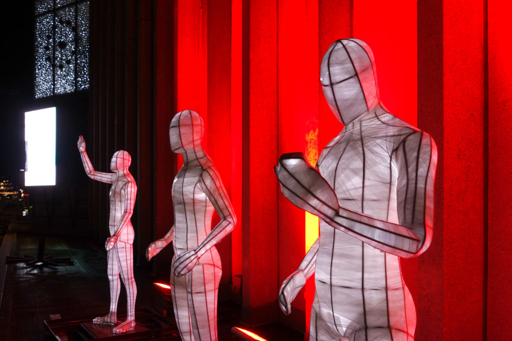 Ratkaisuna syntyi teos valohahmoista, joita on asennettu Sokoksen ja Stockmannin sisäänkäyntien katosten päälle ja Koskipuiston Puisto-ravintolan kattotasanteelle.