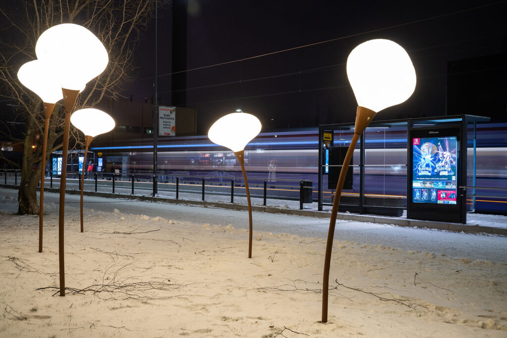 ”Syttyvät ja sammuvat kukat liittävät teoksen havainnoijan osaksi ratikkaliikenteen sykliä. Tarkoitus on herättää ajatuksia siitä, miten tulkitsemme ympäristöämme ja miten havaintomme siitä liittävät meidät osaksi luonnon ja arjen kiertoa”, Laine ja Airola kuvaavat.