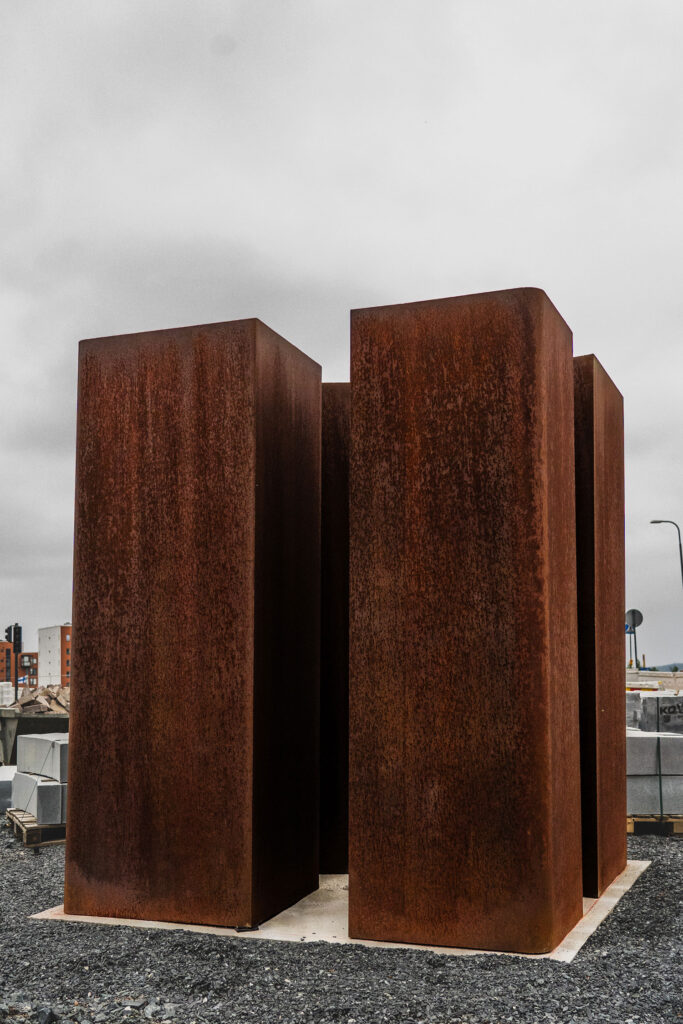 Hyvin minimalistiseen, monoliiteista koottuun rakennelmaan syntyy jännitettä osien välisestä tilasta. Teräspinnan ruostuminen ajan kuluessa on taiteilijan alkuperäinen tarkoitus, joka osaltaan kertoo Tampereen muutoksesta.