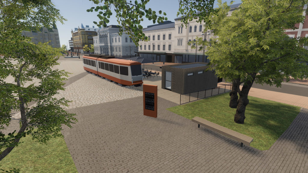 Ratikkakahvilan ympäristöön tuodaan maakuntamuseon laatimaa digitaalista sisältöä viereiseen puistoon sijoitettavaan Näyttelytoteemiin.